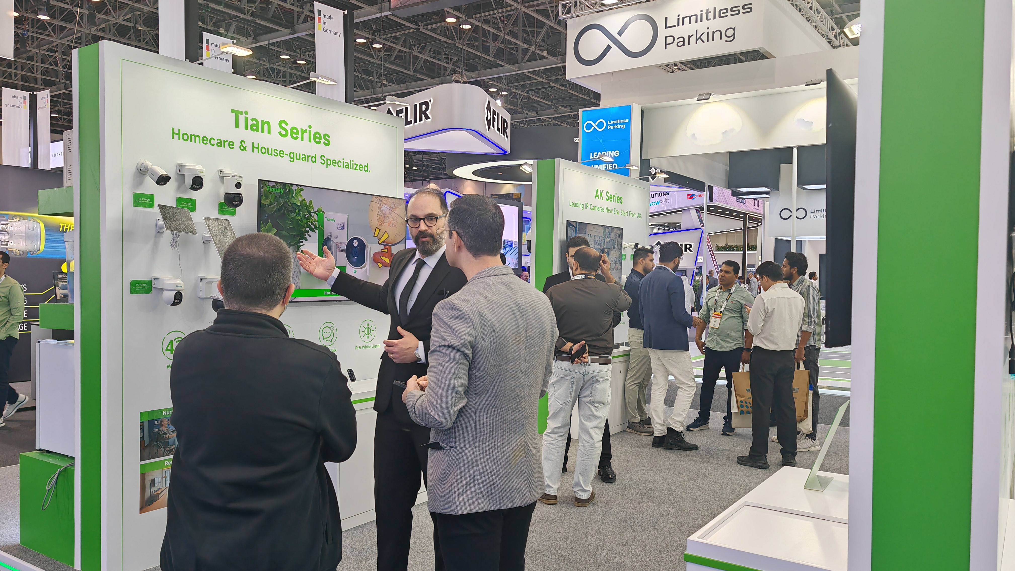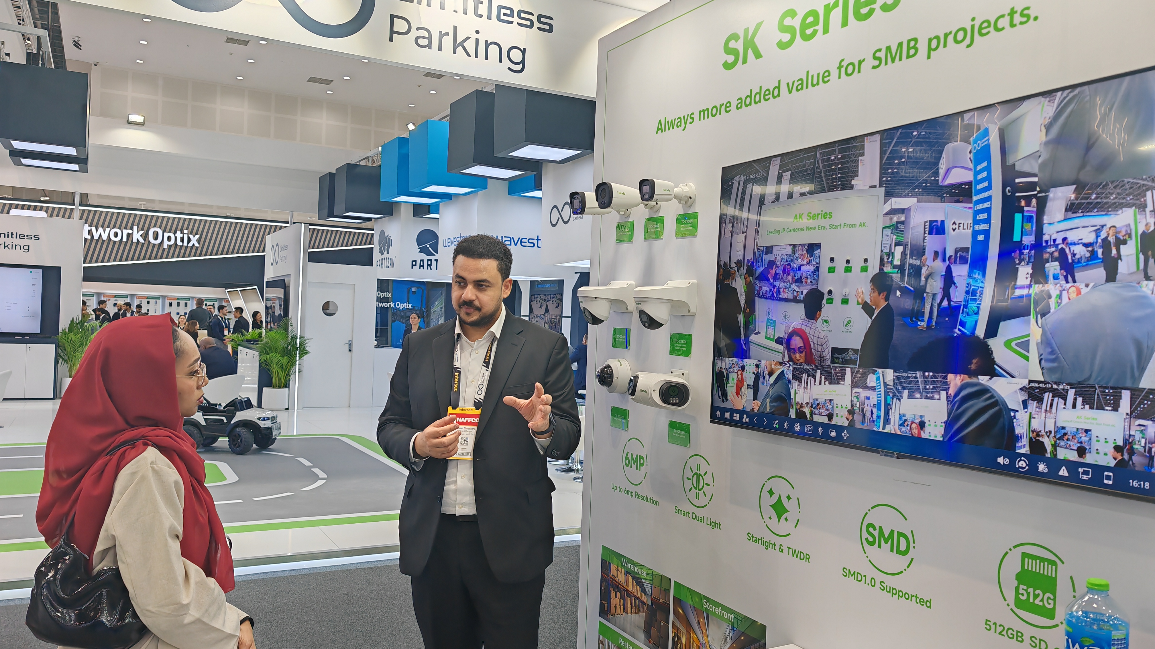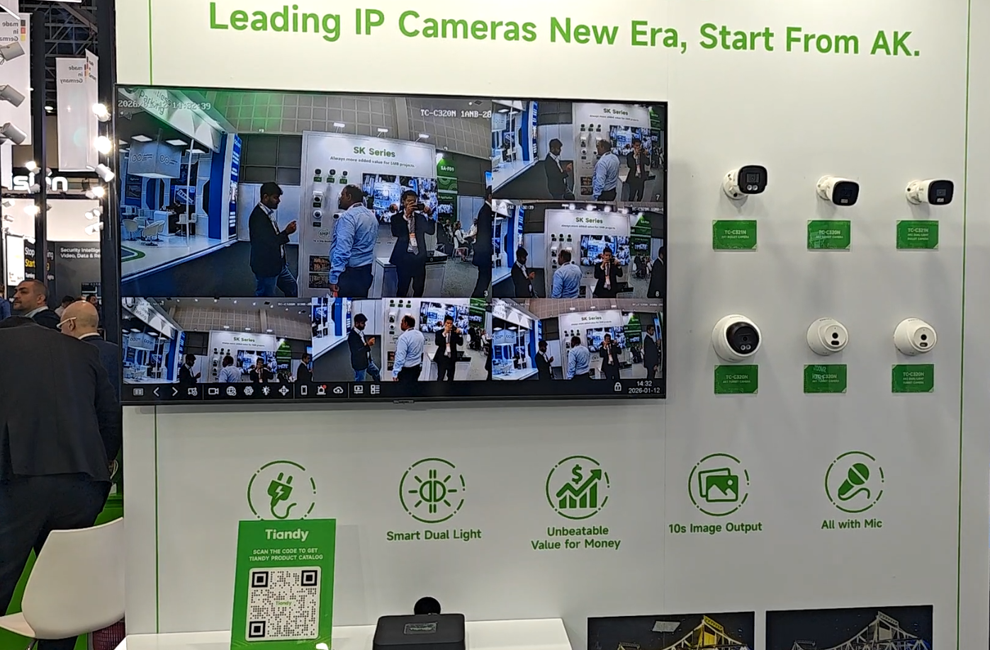 為應(yīng)對全球市場多元化的需求,天地偉業(yè)本次重點展示了60余款核心產(chǎn)品,全面覆蓋家用攝像機、項目型攝像機、AI大模型錄像機、All in One服務(wù)器四大產(chǎn)品線,致力于提供從基礎(chǔ)安防到高端智慧城市建設(shè)的全棧式解決方案。各地客戶結(jié)合自身需求關(guān)注著不同產(chǎn)品,但都不約而同地為天地偉業(yè)的產(chǎn)品實力點贊。歐洲客戶對LK系列在復雜光線下的出色表現(xiàn)與AI智能分析能力表示贊賞;非洲客戶對無電無網(wǎng)攝像機興趣濃厚;海灣地區(qū)工程師則更關(guān)注SK、LK系列在極端環(huán)境下的穩(wěn)定性以及All in One服務(wù)器的便捷部署。此外,Tian系列及K系列所體現(xiàn)的高效中心化管理能力,也吸引了眾多尋求消費升級與商業(yè)效能提升的客戶。