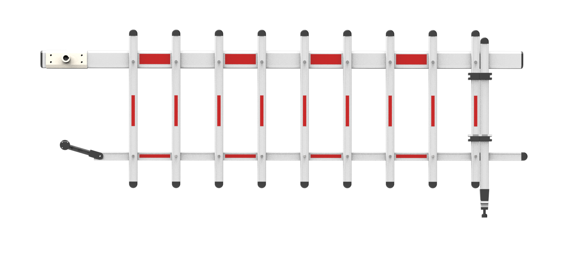 搭配車輛道閘使用2A12號鋁合金材質(zhì)3.05米閘桿尺寸噴漆白色,表面粘貼紅色反光貼紙欄桿連接件黑色塑料(PC+ABS)閘桿端部堵頭黑色ABS塑料